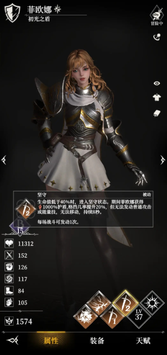 首先为大家推荐阵容里面的前排角色,也就是坦克角色可以考虑初光之盾,初光之盾目前的版本里面是属于一个免费的角色,但是强度里面他是绝对可以排前,而且在基础属性上面他是有被动提升带来的增益在格挡机制上面也是比较强的,而且还可以化解一些单体的控制效果,所以本身是带有净化的,如果大家想要这个前排用的好的话,还可以通过他的反弹机制来进行一些伤害,如果出光之盾的血量在40%之下的话,还可以带来一个护盾,这个护盾的数值是根据他目前的力量数值百分比来,生成的会有额外的30%格挡率加成,所以在残血的时候,他是有反杀能力的,主要的技能还有一个群体控制,不管是对面打断效果还是对于整体的防御效果来说,这个角色放在前排绝对是没有问题的。