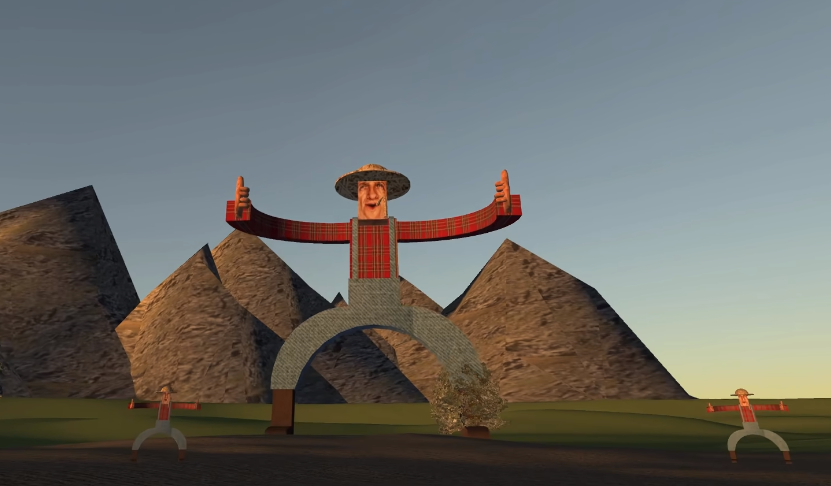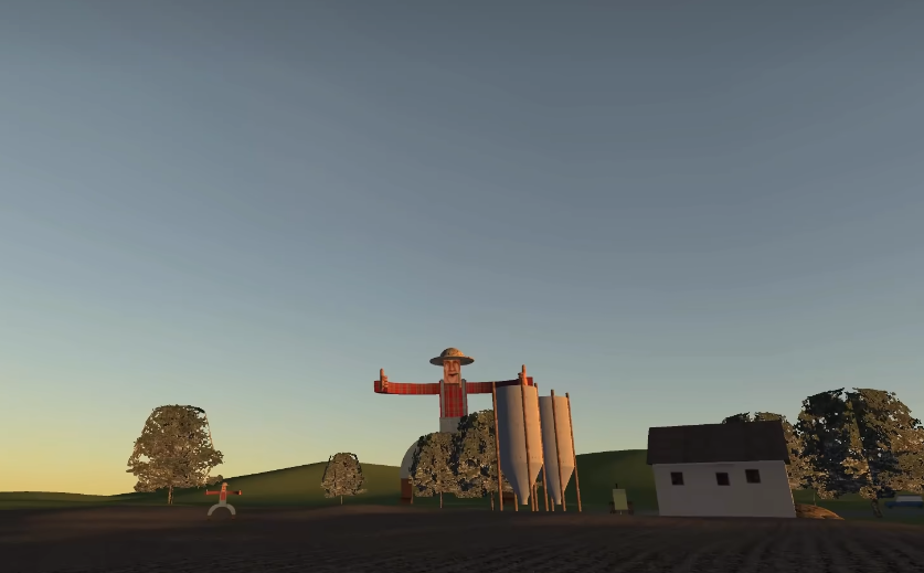 在游戏里,玩家可以带角色前往山顶区域,在这里可以使用自由视角观察整个山顶,同时通过自由视角,也可以发现农夫约翰在玩滑梯,另外在游戏里,可以看到在田地上会有一个类似于稻草人的角色,靠近这个角色之后,最后就会直接发起进攻攻击玩家,这个时候需要快速躲避,否则就会被对方抓捕,游戏也有可能会导致失败,这天地里还会有一个挖掘机,只要靠近这个挖掘机,就会触发非常魔性的歌曲,对方会把玩家绑架到一个神秘的空间。