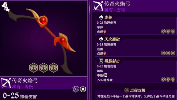 武器建议直接选择传奇火焰弓,这把武器会拥有出色的性价比,而且还会有25点单体伤害,还能附加点燃的效果。如果玩家可以搭配断筋射击,那自然就可以轻松的中断敌人的行动,更厉害的是还会有6个闪避以及16个暴击率。只要站在战斗半径之外,那么全部都可以参与攻击,安全性是很不错的。在衣帽方面可以选择冒险者套装,可以进一步的提升机动性,如果刷不到的话也不需要着急。可以先配合百步穿杨技能在攻击时输出力也不是很弱。