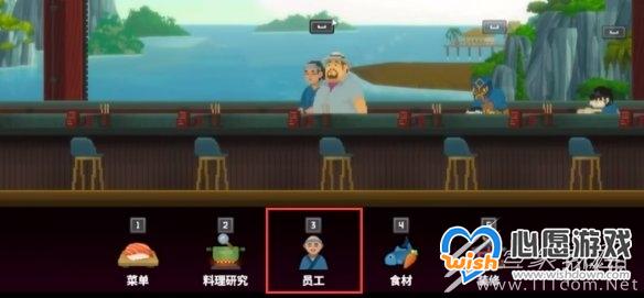 员工是主线任务会解锁的,一直做寿司店的任务就能解锁了。