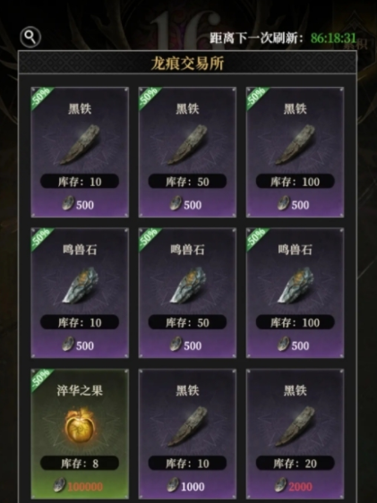 要注意的是竞技场中每天获得的物资是有限的,并且每隔一段时间里面的交易所物资还会刷新,如果有需要的物品,玩家就可以尽快参与对战,收集到足够的龙魂币之后,兑换成自己需要的物品,否则隔一段时间之后,这些物品就会刷新,玩家就无法再购买,只能选择新的页面中呈现出来的这些物品。