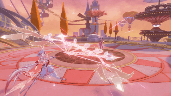 妖精爱莉希雅的技能主要以冰元素伤害叠加和控制效果为主,普攻以远程多段射击为主,在每一段设计中都附带有冰元素伤害,且命中敌人后会累计冰晶能量,能量积累满层之后可以解锁蓄力攻击的额外效果,蓄力攻击可以对目标造成高额的单体冰元素伤害,如果本身携带冰晶能量释放蓄力,还会触发范围内的冰冻效果,将敌人及周围的敌人进行冻结,闪避技能是爱莉希雅保证生存能力的重要技能,有的两段独立闪避次数,极限闪避会触发全局的时空减速,使限定范围内的所有敌人动作放缓,可以更好的保证自身的生存能力。