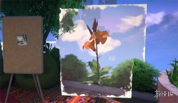 4、最后是那个花,刚好一边有个花,把画对着花放置就行。