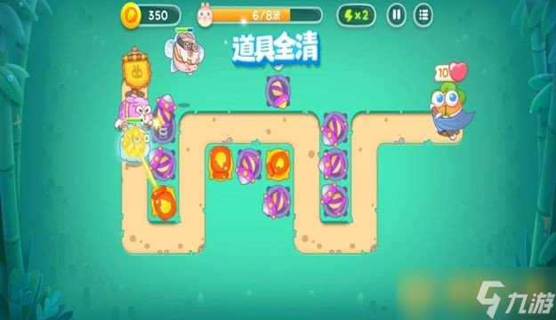 5、一步一步慢慢清理怪物,我们在地图右边设置好火力后,可以让左边的炮塔攻击道具。