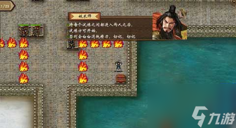 试炼开始,每个试炼之间只能允许两个武将进入,否则判定失败。只有等到四个试炼之间都进入两人后,试炼开始。试炼一共分为四块区域,必须按照游戏提示对势力进行进攻消灭,否则只能徒劳无功。