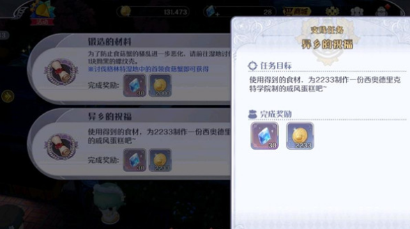 1、这个任务是需要制作特色的戚风蛋糕,戚风蛋糕的制作配方是箱庭面粉+豆乳蛋+草莓。