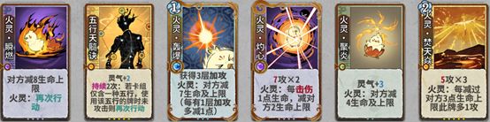 如果2动灼心会正好被对面防挡,可以提前1动瞬燃灼心,再瞬燃天髓。这种情况同样适用于不上火阵上护体丹(且天髓1级)时,因为后面的牌不需要享受火阵加成了。另外,1动瞬燃灼心,3动聚炎护体丹的打法同样是针对曜灵4动五雷的打法。同时,3动护体丹也可应对卦雷等速杀阵容,但效果不如混元火土(在后面讨论)稳定。