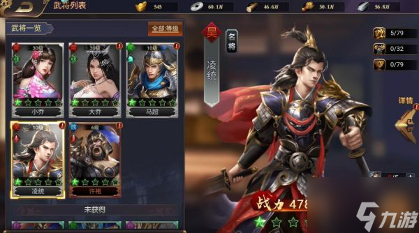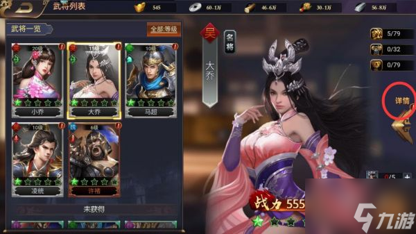 1、进入到武将界面后,点击右侧的详情菜单