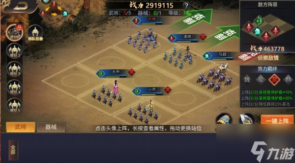 6、武将培养后一键上阵,然后再选择右侧的计策,这样就可以轻松挑战副本了