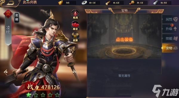 4、将技能一一升级后,接下来就是为武将装备各种宝物了