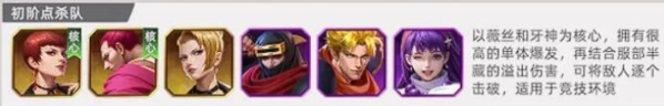以薇丝和牙神幻十郎为核心,专注于对高价值目标的快速歼灭。起手阶段由草薙京使用大蛇薙压低群体血线并附加每秒1.5%最大生命值的燃烧效果;收割阶段薇丝的死亡之爪会对生命值低于40%的目标造成300%暴击伤害并触发连斩追击;补刀阶段牙神幻十郎的五光斩专门针对护盾破裂的敌人,对前排造成额外50%伤害。这套连招可在3秒内消灭同等级精英怪75%以上的血量,是通关时间挑战副本的首选阵容。