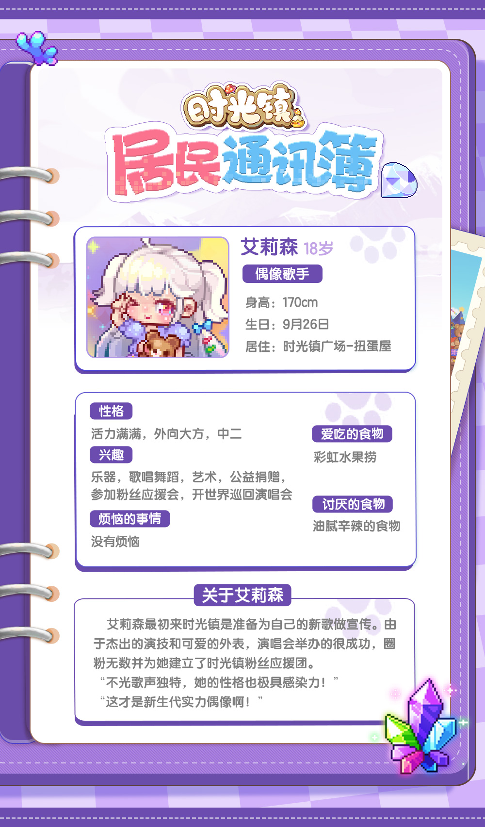 时光镇「居民通讯簿」偶像歌手—艾莉森