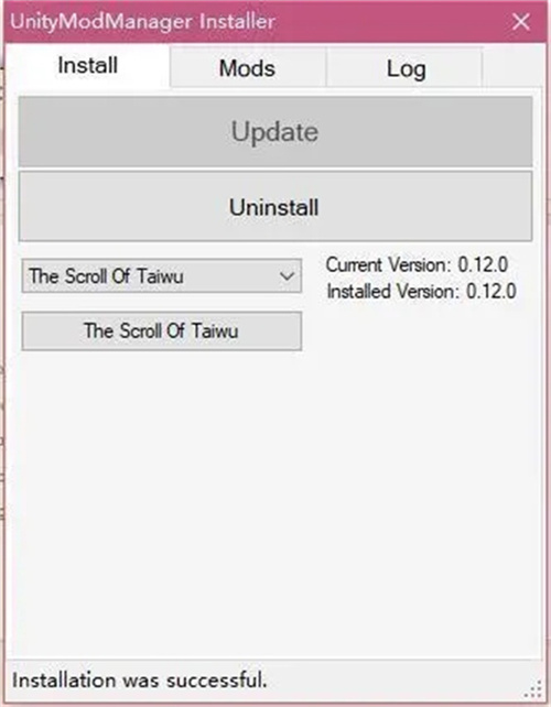2、下载完成后运行unitymodmanager.exe,下拉列表选择【The Scroll of Taiwu】。