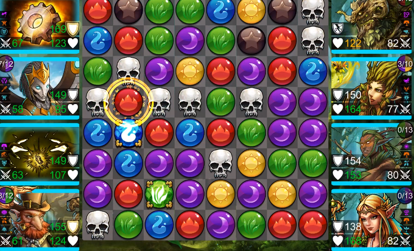 想要有更强的力量,那就可以选择向罗文尼,奴隶还有紫妈,这个阵容可以应对各种不同的对战场景,但相对来说这个阵容比较考验玩家个人的能力,可以根据自己的需求选择不同难度的阵营,作为一个带有三消设定玩法游戏,这个游戏有着大量的随机性,玩家的每一次消除,都会改变当前场景其他道具的位置,每一次消除的选择不同,能带来的战斗力也会有所不同,玩家可以根据实际的需求选择不同的装备技能提升自身能力。