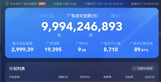 点击“大屏”按钮,将直接跳转至该直播间的“广告大屏”页面