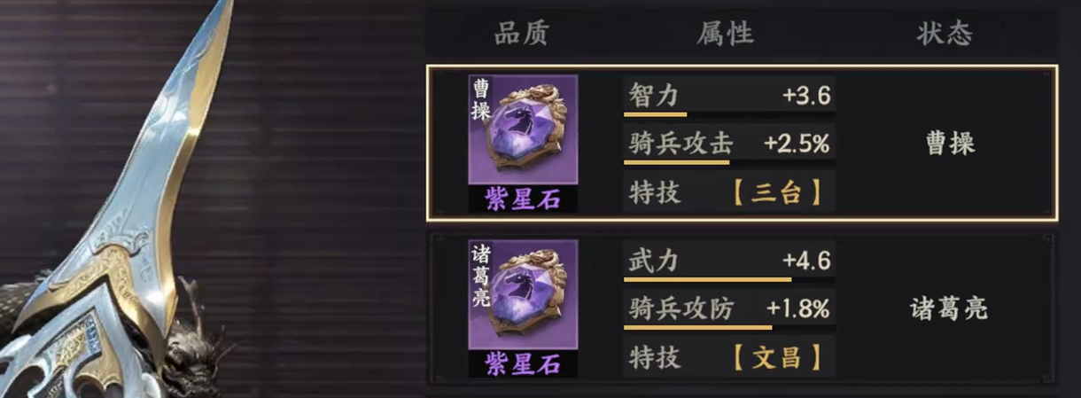 武将根据其战斗角色和兵种特性可分为多个类别,每类武将对星石的需求各不相同。合理的星石搭配需要建立在对武将定位的准确理解上,盲目堆砌高属性星石往往事倍功半。武力型骑兵武将以赵云、马超为代表的武力型骑兵武将,是游戏中常见的突击手和主力输出。这类武将的主属性为武力,星石选择应优先考虑提升武力值的种类。在保证主属性的前提下,副属性应选择与骑兵特性相关的词条,如”骑兵攻击力提升“、”冲锋伤害增加“或”移动速度加成“等。