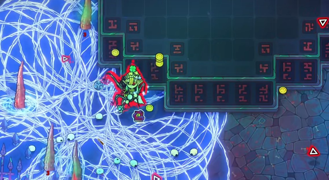 了解游戏中的资源类型及其获取方式是高效开局的前提:法术卷轴:构成战斗体系的核心要素,地面随机掉落,通过拾取并合理搭配形成强力连招。法术分为四大类:法术飞弹、法术增强、召唤类和被动类。晶币与旧神之血:用于局外养成的关键资源,通过击败BOSS获取,能够永久强化角色基础属性。金币:游戏内通用货币,用于商店购买、法杖重铸等,可通过摧毁木桶、花盆等环境物件概率获取(每个花盆约3金币)。同时掌握基础操作能大幅提升游戏体验;快速拆卸法术:避免拖拽操作,熟练使用快捷键快速更换法术组合;地形利用:岩石、拐角等障碍物可阻挡大多数弹幕攻击,松树和草丛也能临时阻挡但会被摧毁;陷阱利用:引诱敌人站在凸出地刺上,配合自身攻击可实现秒杀;也可用弹幕击退效果将敌人推入陷阱。