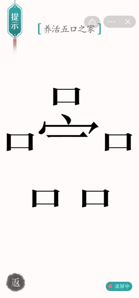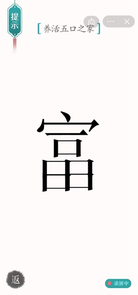 3、然后把五个口拼凑起来,组成【富】字,完成关卡。