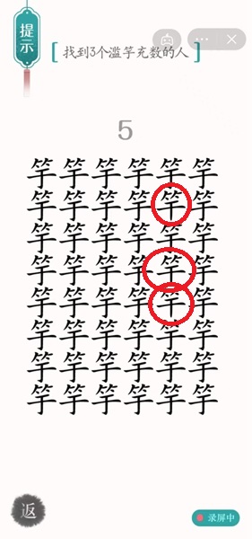 汉字魔法滥竽充数「找到3个滥竽充数的人」通关攻略