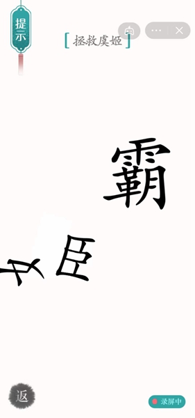 2、首先我们将【姬】中间的口往左拉动,姬就变成了【臣】,通关。