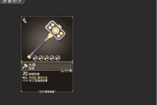 当新手玩家进入游戏之后,前期比较推荐猎矛?、?巴尔巴特琴?和其他群体治疗装备,这些对于新手玩家来说都特别适合,尤其是猎矛,作为前期性价比极高的武器,具有极强的冲锋效果,也有不错的护甲,穿透能力,即便怪物以及野兽具有护盾,但使用此武器也能快速将其攻击对野兽额外造成增伤,25%能够轻松度过前期任务。巴尔巴特停属于辅助神器,提供单体攻击也有不错的减速效果,能够轻松优化具体的战斗节奏。还有很多群体治疗装备也非常适合前期玩家选择,比如海星之战以及尤克里里,这些都能轻松弥补,前期缺乏群体治疗的种种短板。