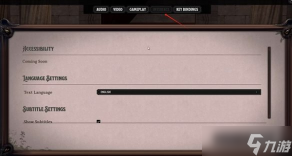 然后玩家需要在设置页面里点击上方的INTERFACE选项。