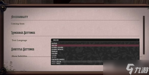 接着玩家在页面里可以找到Text Language选项,点击选择中文简体。