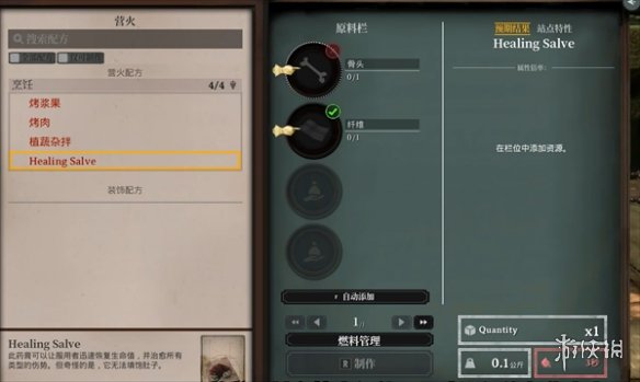 5、目前游戏里的回血道具只有药粉和药瓶这两种,药粉可以在篝火出使用骨头和纤维制作出来。