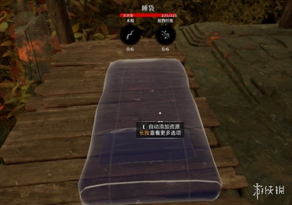 10、所以玩家在游戏的前期一定要常备6个木棍和植物纤维,这样在休息值低的时候可以制作出睡袋来恢复休息值。