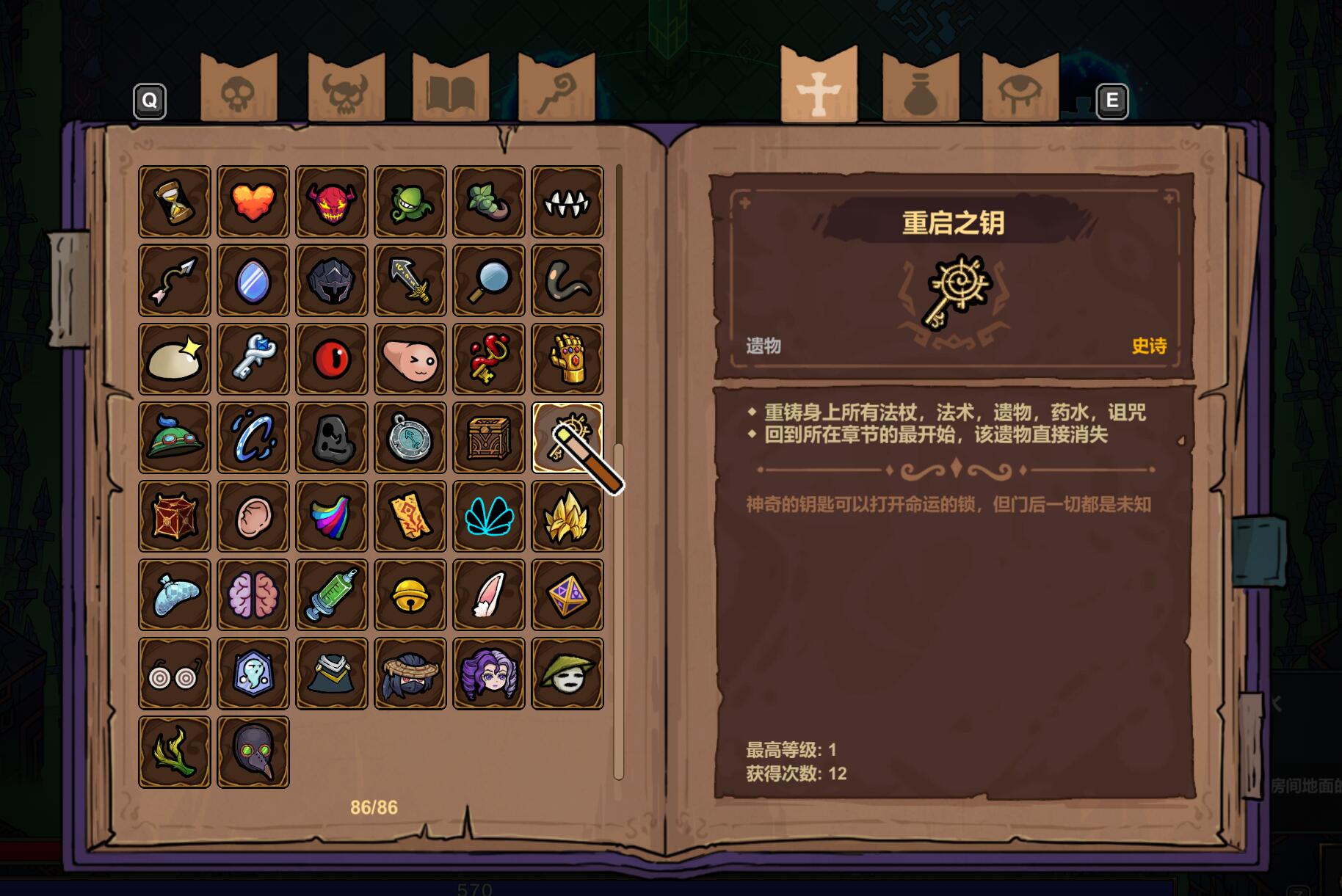 什么时候必须用重启之钥?主要看两个情况:一是遗物组合太烂,比如前三个区域只拿到“普通攻击+5%”这种没用的遗物,后面根本打不动精英怪。二是法术搭配错了,比如选了冰系法术却拿到火属性法杖,技能放出去没伤害,这时候重启比硬打效率高十倍。但如果已经打到第三区域,或者背包金币超过1000,就不建议用了,重打的时间够直接硬打过去了。
