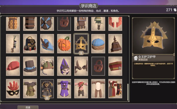 学识商店是游戏里比较核心的一个功能,解锁之后才能获取一些特殊的道具,并且在这里获取建筑物资以及一些特定的职业角色,这样可以让玩家有更强的实力,也能提升整个队伍的战斗能力,首先特殊的道具包括剃刀或者是中世纪骑士的皮肤,还有一些护甲,这些都可以给角色带来额外的加成,另外薛是商店还可以解锁像草药师这样的治疗类型职业,也可以解锁夜市这样的建筑,夜市最主要的作用就是可以刷新一些比较优质的装备。