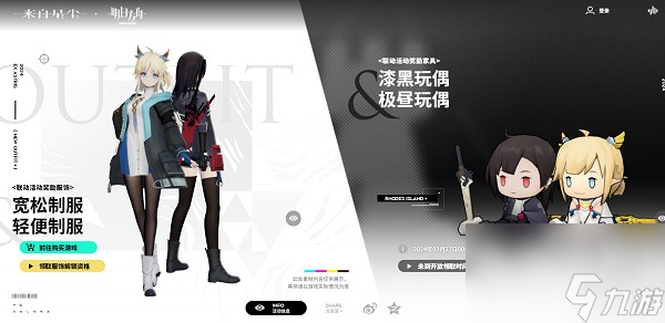 活动期间,调查员们可以在活动页面领取“联动服饰解锁资质”,并把它绑定至鹰角通行卡。游戏发售后,使用同个通行卡账号进入游戏,即可永久解锁联动活动服饰“宽松制服”、“轻巧制服”。