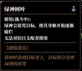 2、绿神树叶使用之后可以诅咒目标,可以让其身体慢慢腐烂,可以对战卡特的时候进行使用。