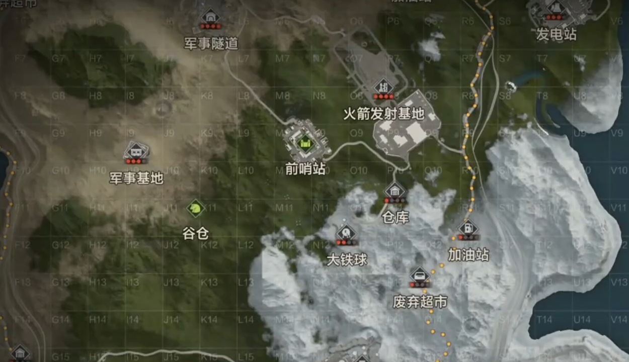 实际上,失控进化的地图为4*4km规格的大地图,它在形式上更像一个与世隔绝的海岛,并且除了与大海接壤的海滩外,海岛上还有沙漠、雪山和丛林三种不同的地形。这些地形不仅在视觉效果上会有很大的区别,它们所能采集到的资源也都很不一样,甚至有部分特殊资源只会在某地形里才有产出。游戏的资源会散落在各地形的建筑中,每栋建筑区域的名字都会显示在地图上,并且会在它们的名字下方用红点来帮助玩家进行资源数量标注,红点越多的建筑区域资源也就越好,也更容易开出珍稀道具和图纸。