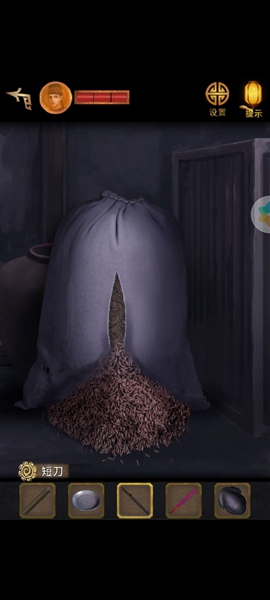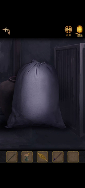 12、然后进入大牢,先救人,拿到纸团和地上的米糕,来到右边桌子上拿空碗。