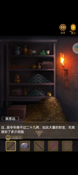 14、用火折子点亮火把,然后在钱堆里搜块玉佩出来。