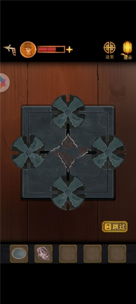 2、如下所示调整位置获得【雕花石佩一】,探索找到【半块青砖】,用砖砸开裂缝得到【雕花石佩二】,在下图位置放下两个石佩。