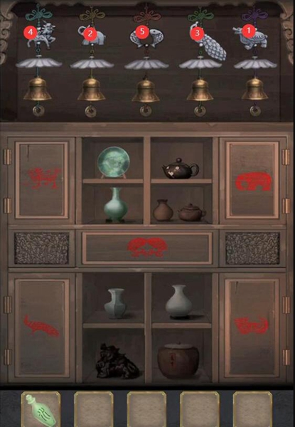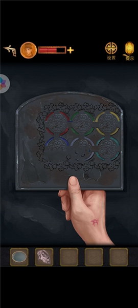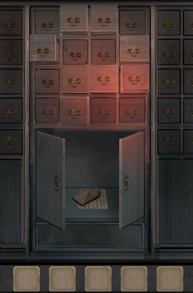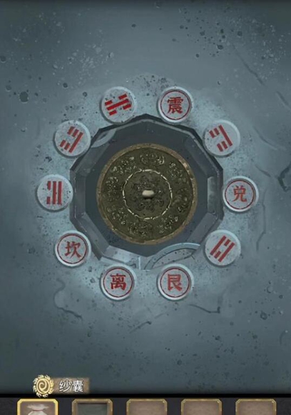 10、调查获得【寿字铜纹】,根据墙上的提示调整柜子如下图得到【药囊】。