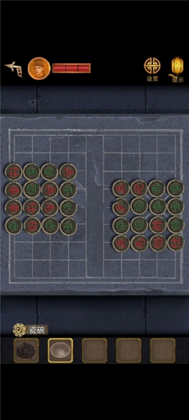 6、按照下图摆放棋子获得【银饼】,放到圆形卡槽的门上解锁,打开左边的房间。