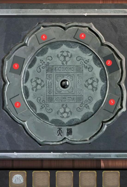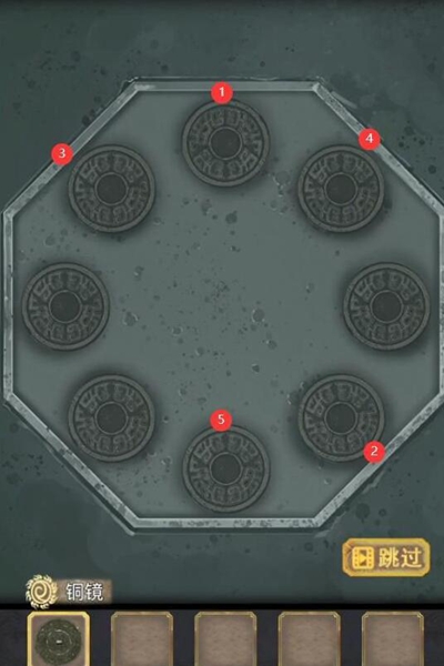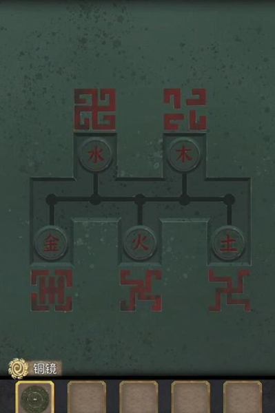 4、在走廊得到【铜镜】,按照下图顺序按下按钮解开谜题,把玉佩放到首饰盒上得到【琴弦】。