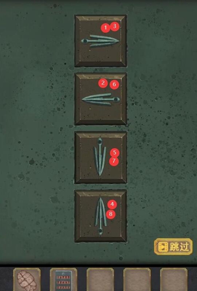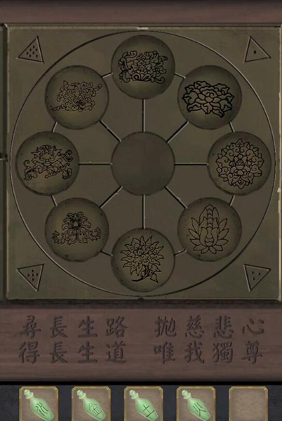 15、最后门上的机关根据石牌上的字旋转门上的按钮,旋转如图所示,完成第五章。
