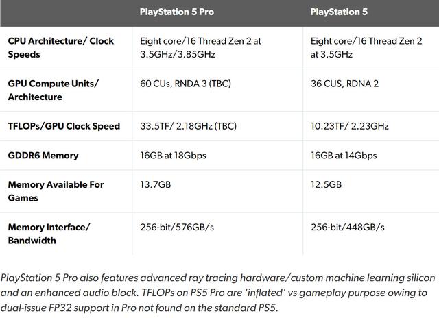- 数毛社还补充说虽然PS5 Pro内存容量和PS5一致,但带宽更高,而且有额外1.2GB的内存供游玩游戏