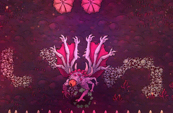 每一个关卡都会有独特的美术风格,而且还会具备互动的机制。在战斗的过程中,玩家就需要和234种不同风格的怪物一起对战。例如有扭曲的触手,还有诡异的寄生体。与此同时,游戏里面还会有100把属性比较独特的工具,另外还有80种可以改变外观的异物。配合肉鸽经典的随机元素,还有道具掉落的机制,就可以实现一局一个世界的感受,每一局游戏全部都会充满挑战以及未知,能够满足大家的体验。
