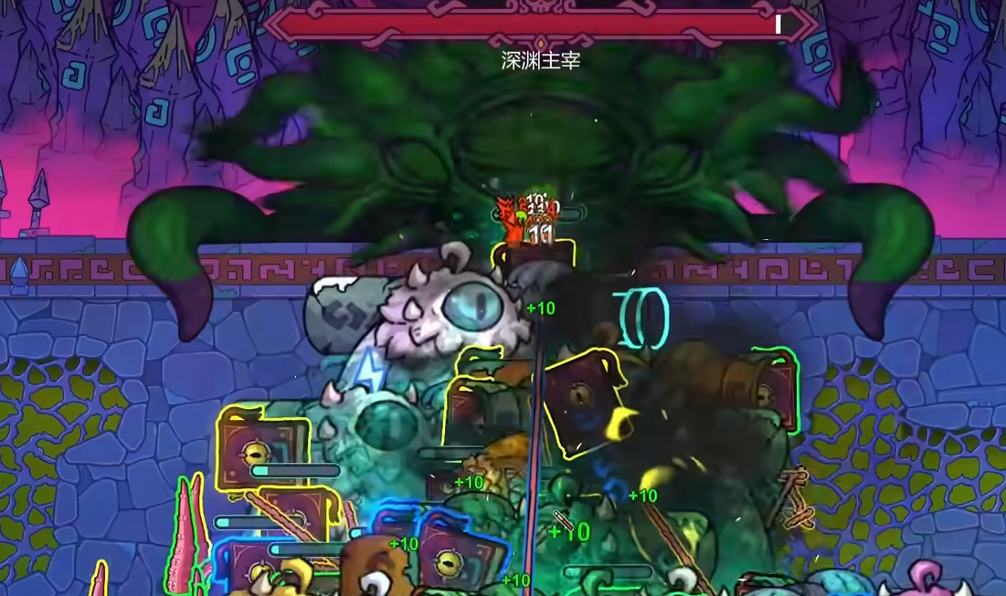 融合召唤是召唤体系的另一革新,能将两个相同召唤物合成为强化个体。融合后的单位继承两者的属性总和并额外获得20%全属性提升,且拥有特殊攻击模式。如两个光之柱融合后会获得360度无死角攻击能力;两个触手怪融合则触发范围缠绕效果。该法术占用2个法术格,使得战术构建更为紧凑,建议优先融合高价值单位如克总之手或脐带。值得注意的是,融合过程不可逆,且部分召唤物融合后可能失去原有特性,需在实战前充分测试。