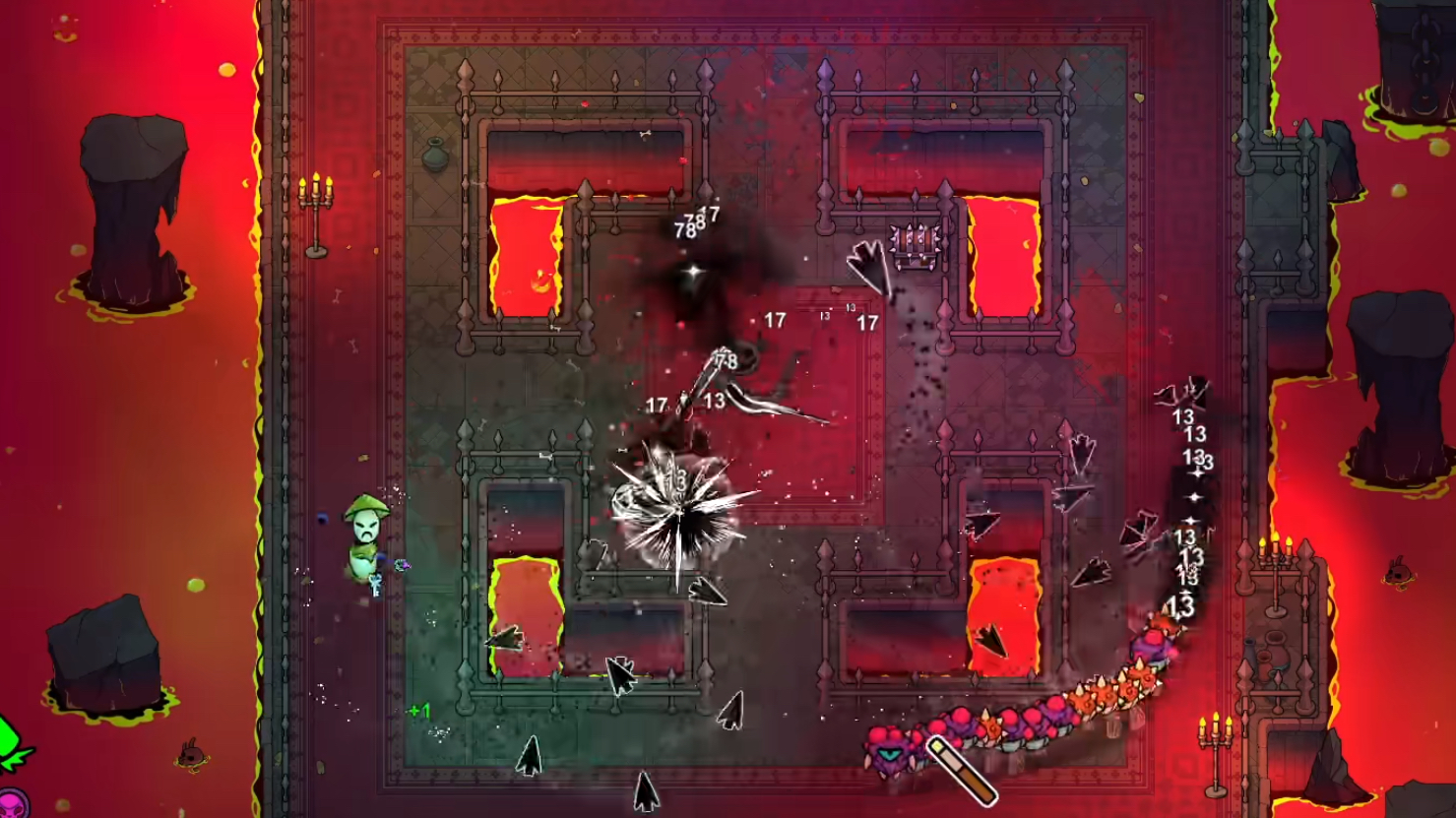 当玩家装备上黄老饼套装之后,玩家的初始法杖会转变为弓箭,法术则会进化成为“黄老饼的箭头”。当玩家每施放50次弓箭,那么下一次的攻击就会射出多个大箭头,且大箭头的伤害是普通箭头的6倍。此外,玩家还可以利用“绚丽花火”法术来增强加快充能,比如将“黄老饼的箭头”放置在“绚丽花火”的右侧,那么就可以积累4个充能。如果是按照“绚丽花火”——“黄老饼的箭头”——“绚丽花火”——“黄老饼的箭头”这样的排列顺序放置,那么就可以积累16个充能,就可以快速触发大箭头。