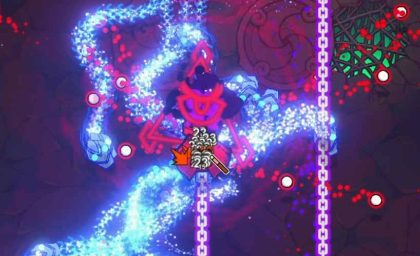全视之眼共有两种攻击方式,分别是有红点的铁链以及没有红点的铁链,有红点的铁链可以通过打击红点来让铁链断掉,没有红点的铁链无任何方法出现时必须躲掉。其余时间就是出啥技能躲啥技能,直到将boss的血量全部耗掉即可。关底boss是不可名状物,战斗的时候有四种行动模式。第一种是会设计出黑色弹幕,黑色淡墨很容易闪躲,不过弹幕当中会有鬼脸跟随,并且在场上还会停留很久,如果不幸被击中,还会增加被诅咒的buff。