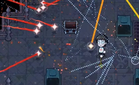 最后一个为关底boss钢铁牢笼。钢铁牢笼只要掌握诀窍,角色移动移速够就很好打,反之则是你的噩梦。这个boss一共有两个形态,战斗的时候要留意boss技能突起的光球方向,尽量不要让Boss把你逼到墙角。第一轮将boss的血打掉后就会进入第二形态,这个形态往往对新人来说很不友好,你可以使用光球进行攻击,然后飞到boss中间,射出多道激光。最后一个boss的主要考验的是反应速度,反应速度不够,也会被波及。