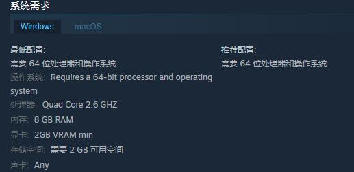官方只公布了windows和mos版本的最低配置,可以看到配置方面非常低低配电脑也可以畅玩。