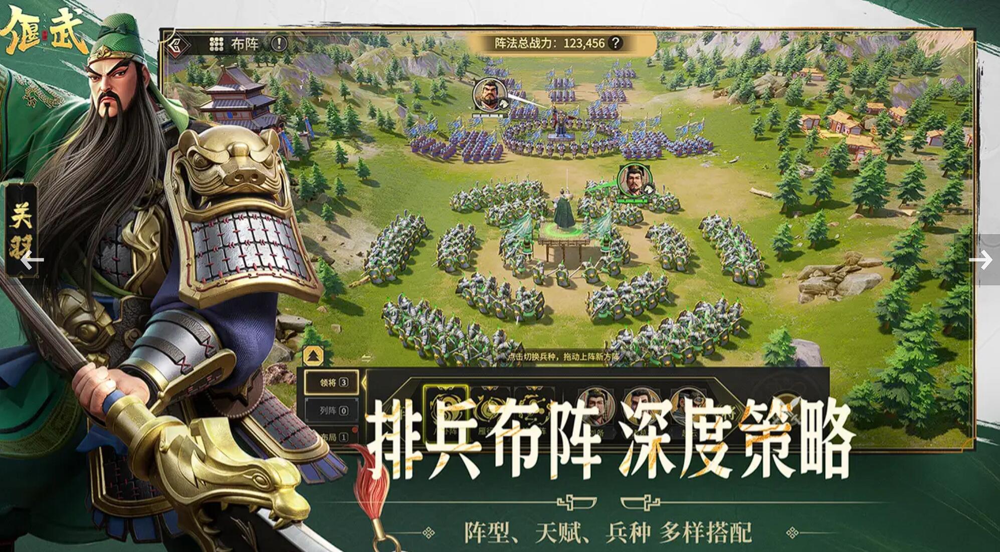 画面采用国风水墨风格,主城建筑的飞檐斗拱、雕花窗棂都透着唐宋古韵,野外地图则参照三国真实地貌设计——比如益州的崇山峻岭、荆州的水乡泽国,连植被都随季节变化,春天青草茵茵,秋天落叶满地。名将技能更是帅到炸裂:赵云释放“龙胆”时银枪会化作龙影横扫战场,吕布“无双”技能触发后,赤兔马的残影能踏碎地面,这些特效既好看又贴合人物典故,比如诸葛亮的“八阵图”技能真的会在地上形成八卦阵型,把敌人困在里面动弹不得。