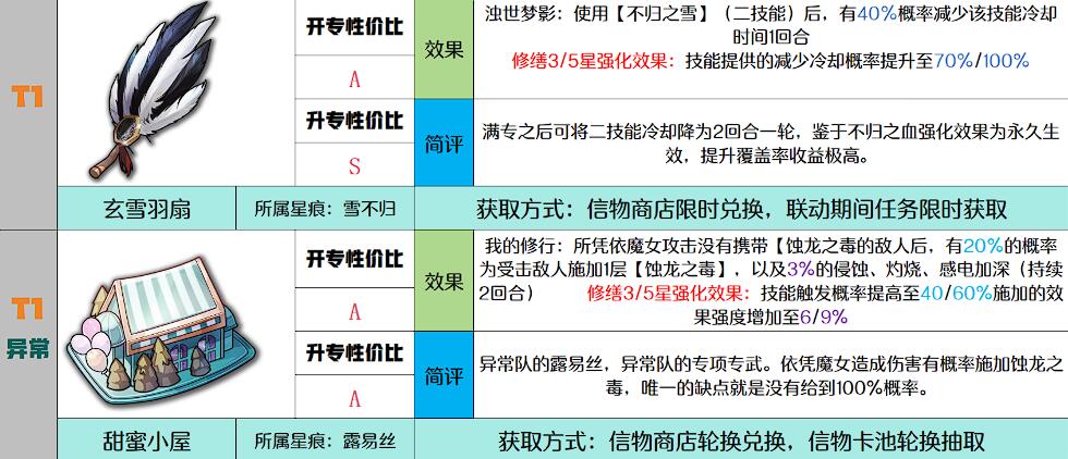 T1级信物针对特定战术提供核心增益,需结合星痕技能特性组合。甜蜜小屋(露易丝)攻击带有蚀龙之毒的敌人时,20%概率附加侵蚀、灼烧或感电状态,是异常队的核心组件、垫刺(格拉蒂亚)则能让攻击无视目标24%侵蚀抗性,适配侵蚀队特化打法。此类信物需绑定对应流派生效,前期资源有限时建议聚焦一个流派培养。
